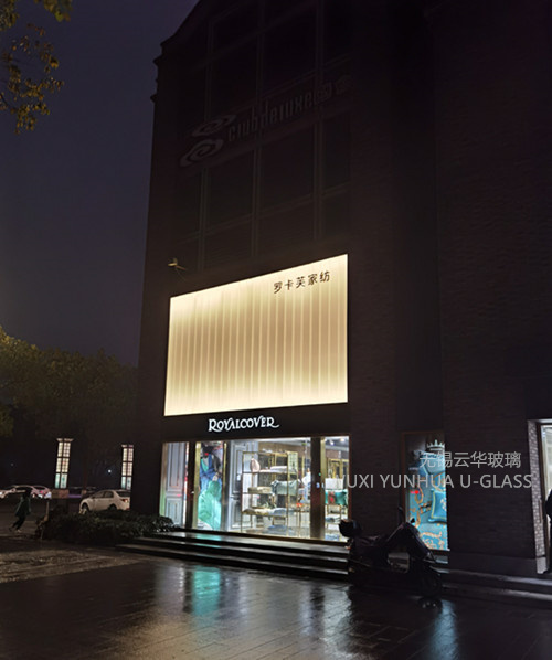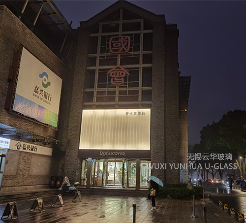 選用無錫云華K25*60*7超白粗條紋噴砂U型玻璃